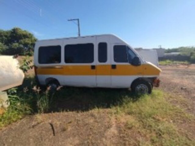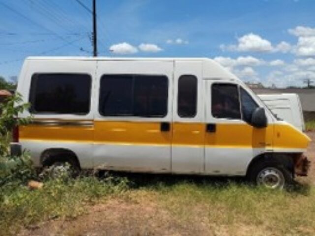 Automóvel Ducato Minibus, marca Fiat, ano e modelo 2010, placa BNZ 5395, em regular estado de conservação, porém com avaria no motor e câmbio desmontado dentro do veículo, faltando peças.