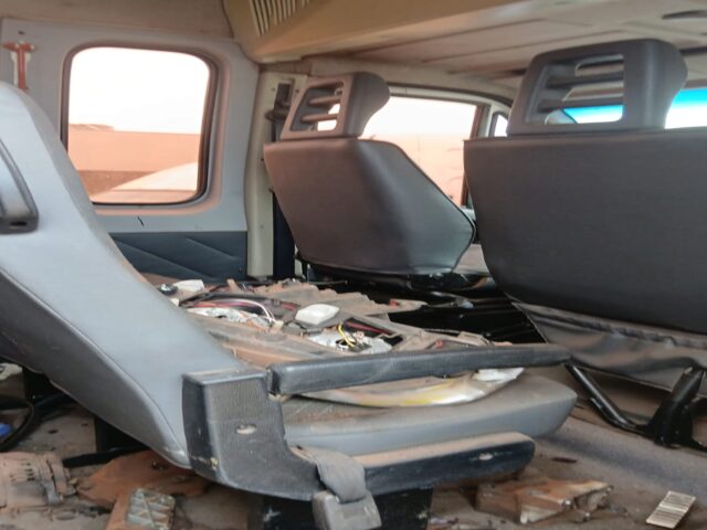 Automóvel Ducato Minibus, marca Fiat, ano e modelo 2010, placa BNZ 5395, em regular estado de conservação, porém com avaria no motor e câmbio desmontado dentro do veículo, faltando peças.