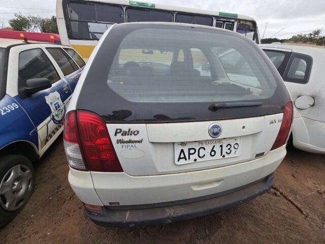 Marca/Modelo: FIAT/PALIO WEEK ELX FLEX Ano de fabricação/modelo: 2007/2007 Combustível:ALCOOL/GASOLINA Cor: BRANCA Placa: APC-6139 RENAVAM: 931455952 Situação do veículo: BLOQUEIO POR INDISPONIBILIDADE ADMINISTRATIVA - ACIDENTE - MEDIA MONTA Descrição do Bem (leiloeiro): Interna em regular estado, externa em bom estado, pneus em regular estado, possui: ar-condicionado, vidros elétricos e direção hidráulica, consta acidente de média monta (regularização por conta do comprado). Não foi possível avaliar as condições de funcionamento e demais defeitos do bem, podendo estar faltando peças. Visitação: PÁTIO DE MÁQUINAS DA SECRETARIA DE OBRAS PÚBLICAS - AV. TANCREDO NEVES 2259, BAIRRO ALTO ALEGRE OBS: É de suma importância a visitação e vistoria do lote. Podendo estar faltando peças e/ou vícios ocultos.Informações de: Visitação, Sistemática do Leilão, Prazo de Pagamento, Comissão do Leiloeiro e demais, consulte o EDITAL. 5.6.1. Cabe aos interessados vistoriar os bens a serem apregoados, agendando com os responsáveis dos lotes, conforme Anexo II do presente edital, em dias úteis, no período compreendido de 05/01/2026 a 21/01/2026 no horário compreendido entre as 08h às 11h e das 13h às 16h.